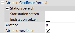 Im Falle von zwei Fahrbahnen werden zwei Gradienten verwendet, somit können folglich auch zwei verschiedene Marken verwendet werden - “Abstand Gradiente (links)” und “Abstand Gradiente (rechts)”.
