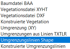 Wählen Sie statt eines Vegetationsobjekts den Ordner “Bewuchs” oder eine darin enthaltene Vegetationsgruppe, erstellen Sie eine XML-Datei, die die Vegetationsdaten in aufbereiteter Form für KorFin® enthält und die Sie dort verwenden können.