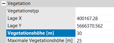 “Konstruierte Vegetation” hat analoge Eigenschaften zu importierter Vegetation. Die Konstruktion erfolgt hierbei direkt in KorFin® Model.