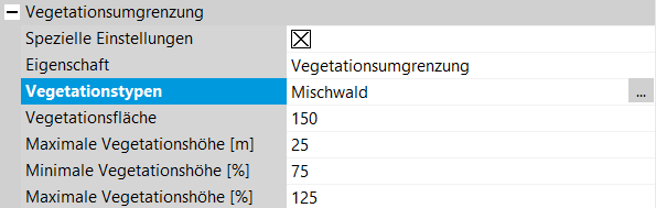 Einstellungen einer einzelnen Vegetationsdatei in der Vegetationsgruppe