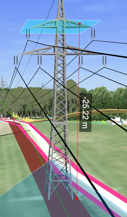 Im Modus “Messen” können Sie “Höhen” oder “Koordinaten” von Punkten messen oder “Entfernungen” zwischen Punkten auf einer Konstruktionslinie bzw. “Polygone” berechnen lassen.