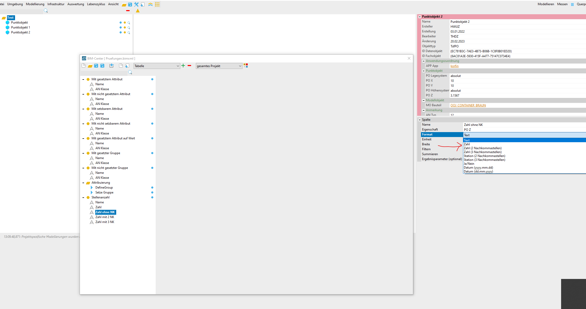 Im BIM-Center ist für “Tabellenspalten” auch eine Zahl ohne Nachkommastellen (gerundet) auswählbar. Das angegebene Attribut muss dabei eine Gleitkommazahl sein. Ist die Zahl eine Ganzzahl (zählbare Gegenstände), kann auch Ganzzahl direkt ausgewählt werden.