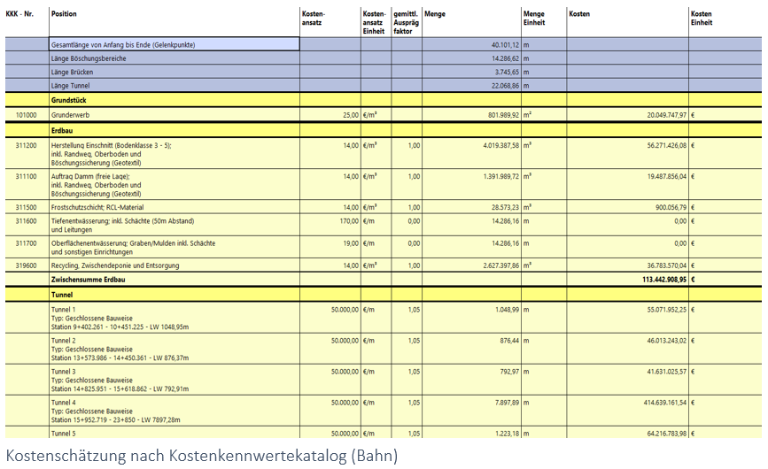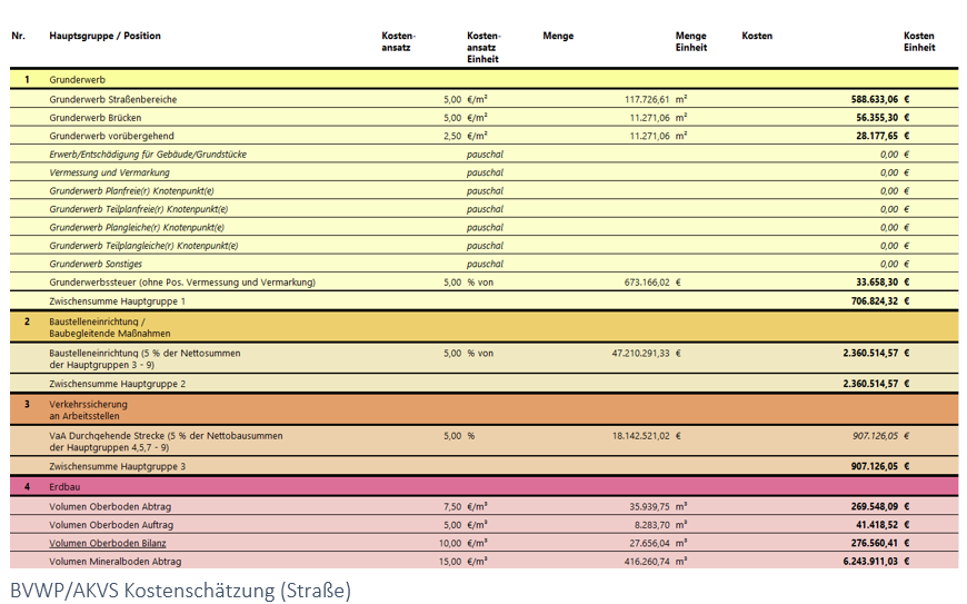Da zurzeit keine Kostentabellen für gemischte Verkehrswege existieren, sollten Sie für eine Kostentabelle für Straßen nur straßenrelevante Konstruktionslinien einbeziehen (für Kostentabellen für Bahntrassen, nur bahnrelevante Konstruktionslinien und so weiter).