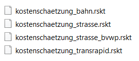 Klicken Sie auf den Button “Schablone laden…” und wählen Sie im Installationsverzeichnis im Ordner “work” eine der verfügbaren Kostenschablonen (für einzelne Bereiche – Straße, Bahn, Transrapid – vordefiniert), die mitgeliefert werden, aus. Die Tabelle wird geladen.