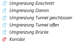 Da jetzt nur die Damm- und Einschnittsflächen ausgestanzt sind, empfiehlt es sich im Tunnelportalbereich noch eine zusätzliche Modellfläche manuell hinzuzufügen. Diese muss im Anschluss ebenfalls als Modellumgrenzung exportiert (siehe oben) und zusätzlich in der Arbeitsmappe angemeldet werden.