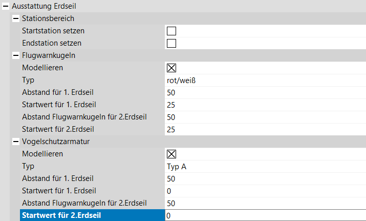 Startwert für 2. Erdseil | Angabe des Startwerts. |