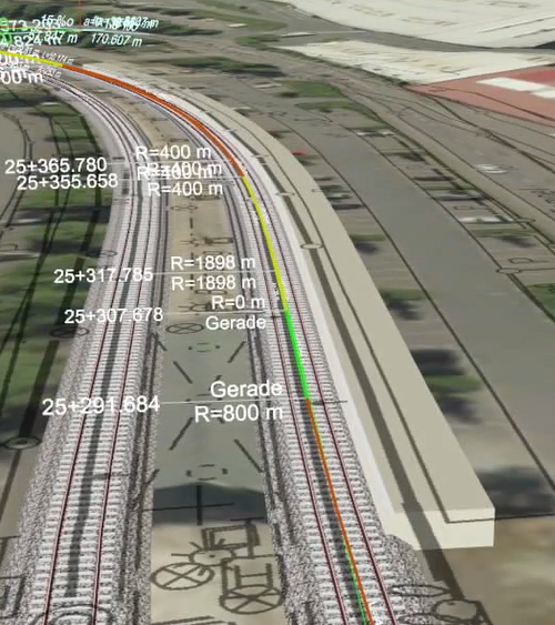 Die Gleisachse für den Bahnsteig ist in KorFin® modelliert.