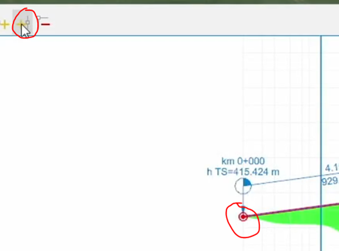 Bei Bedarf fügen Sie im Längsprofil einen Zwischenpunkt ein, um die Straße präziser an das DGM anzuschmiegen.