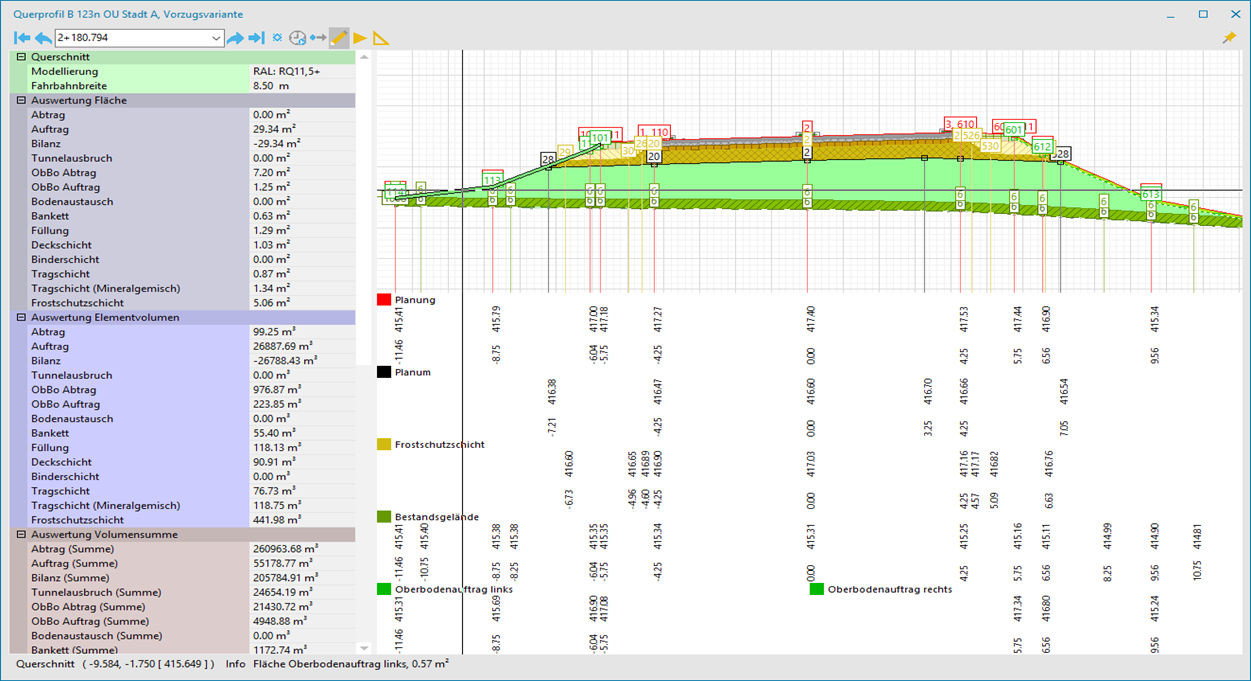 Analog zum Querprofil fügen Sie die Marken “Erdbau” und “Oberbau” (Straße und Bahn) hinzu.