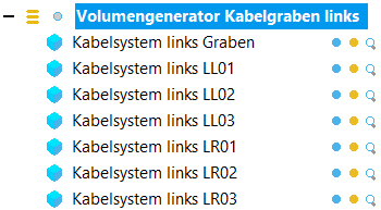 Dazu markieren Sie das Kabelsystem im Projektbaum und wählen Sie über das Hauptmenü die Option “Volumengenerator (Erdkabel) neu…” aus.