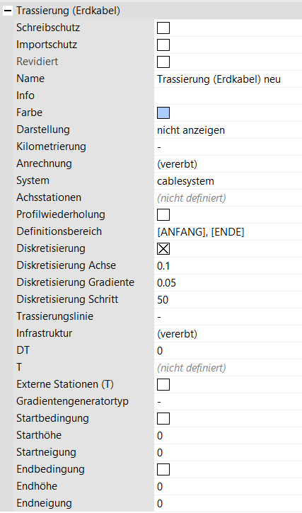 Parametrische Einstellungen des Erdkabelsystems