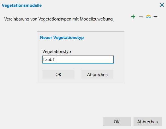 Mit dem “Plussymbol” erstellen Sie neue Vegetationstypen und vergeben eindeutige Namen.
