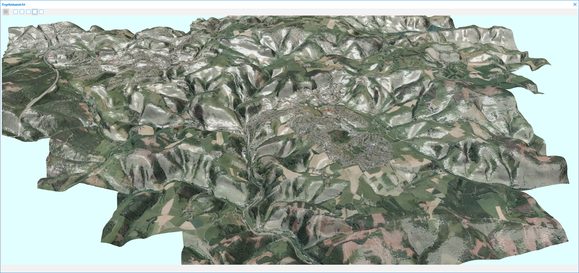 In dieser wird das berechnete Geländemodell angezeigt. Hier können Sie die Kamera mit der Maus bewegen.