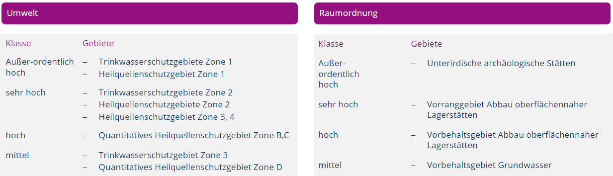 Beispiel Umwelt und Raumordnung (unterirdisch)