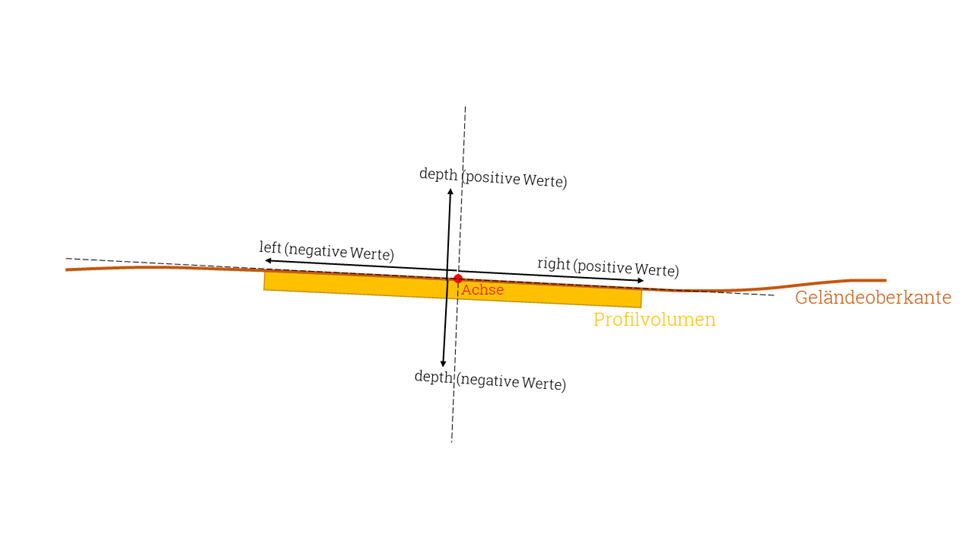 Die Profilverschiebung besteht aus vier Eckpunkten, deren Lage ausgehend von der referenzierten Achse bestimmt wird. Dabei folgt das Profil dem Verlauf der Geländekante.