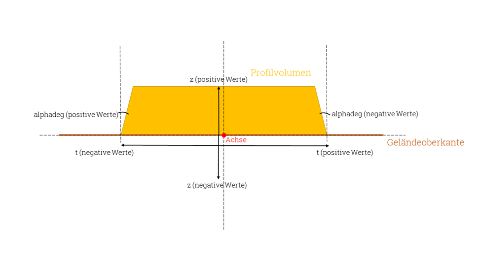Das geböschte Profil besteht aus einem Viereck, deren Lage ausgehend von der referenzierten Achse bestimmt wird.