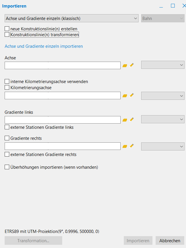 Achsformat und Achse | Angabe des Achsformats und der entsprechenden Achsdatei. |