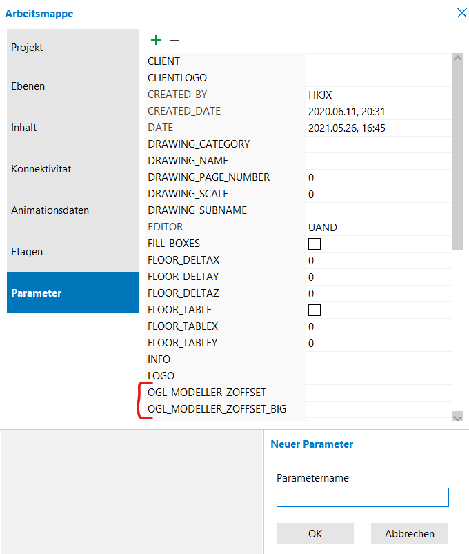 Es können folgende Parameter hinzugefügt werden: