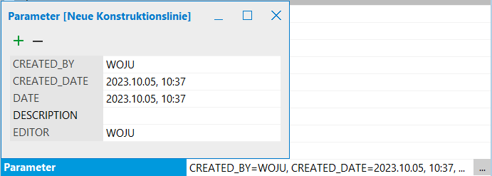 In den Parametern werden alle zur Konstruktionslinie hinterlegten Eigenschaften angezeigt. Diese Parameter werden auch für verschiedene Parameter zur Berechnung herangezogen.