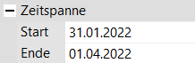 Klicken Sie auf die Zeitachse doppelt, erscheint das Dialogfenster “Zeitspannen”, in welchem Sie den gesamten eingestellten Zeitbereich sowie die aktuell ausgewählte Zeitspanne sehen können. Diese Angaben können Sie bei Bedarf anpassen.