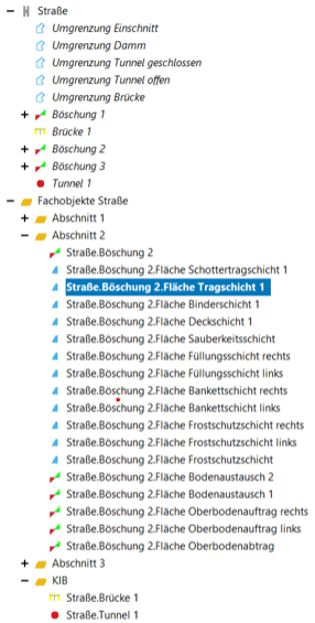 Je nach Auswertungsziel später besteht die Möglichkeit, Fachobjekte als eine Gesamteinheit oder in Abschnitte unterteilt darzustellen. Abschnitte ermöglichen eine stationsweise Auswertung des Modells.