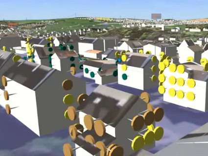 Das Ergebnis kann eine Übersichtskarte schematisch angezeigt werden. Dabei werden die höchsten Werte an jeder Hauskante als Grundlage genommen.