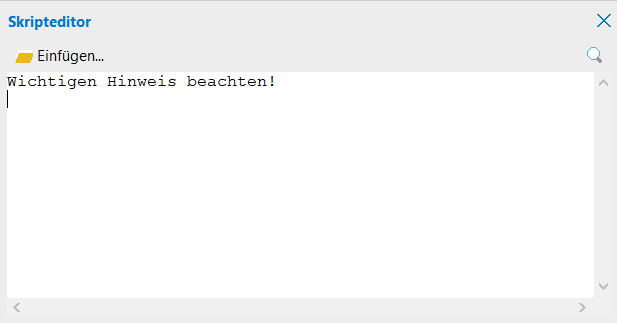 Klicken Sie auf … neben der Zeile “Text” zum Eingeben des eigentlichen Kommentartextes. Es öffnet sich der entsprechende Skripteditor.