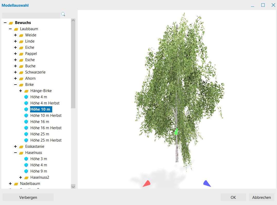Vegetationstypen | Wählen Sie die Baumtypen im sich öffnenden Dialogfenster (Taste ...). |
