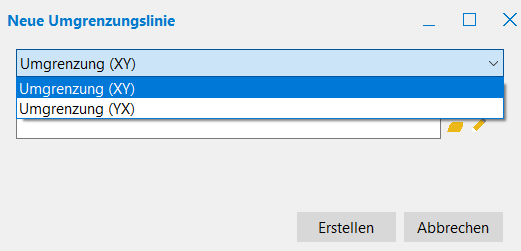 Das Einfügen eines Eigenschaftsgebiets aus einer Umgrenzungslinie rufen Sie über das Hauptmenü “Import” oder über die Schaltfläche “Umgrenzungslinie anmelden…” auf. Es erscheint folgendes Dialogfenster: