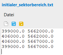 initialer Sektorbereich | Genau einem Eigenschaftsgebiet können Sie die Eigenschaft “initialer Sektorbereich” zuweisen. Dieses Gebiet definiert den grundlegenden Bereich des DGM inklusive des festgelegten Nullpunkts. In diesem Gebiet wird die grundlegende Sektoraufteilung durchgeführt. Ist kein initialer Sektorbereich definiert, wird dieser aus den Punkt- und Bildquellen automatisch bestimmt. Sie können also mit einem speziellen Eigenschaftsgebiet diese Automatik deaktivieren und den Bereich manuell einstellen. | |