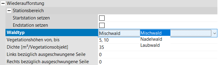 Waldtyp | Definieren Sie, welche Vegetation modelliert werden soll. |